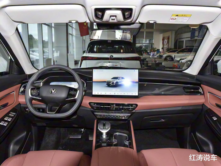 内饰方面,长安CS75 PRO新车型的中控台延续现款在售车型的布局,但是座椅新增红棕皮质包裹,换装了全新样式的电子挡把,并且将12.3英寸中控屏改成了14.6英寸悬浮式中控大屏,预计车机系统将会进行升级,将会配备可开启的全景天窗、无钥匙进入和启动、远程启动、全景影像等。